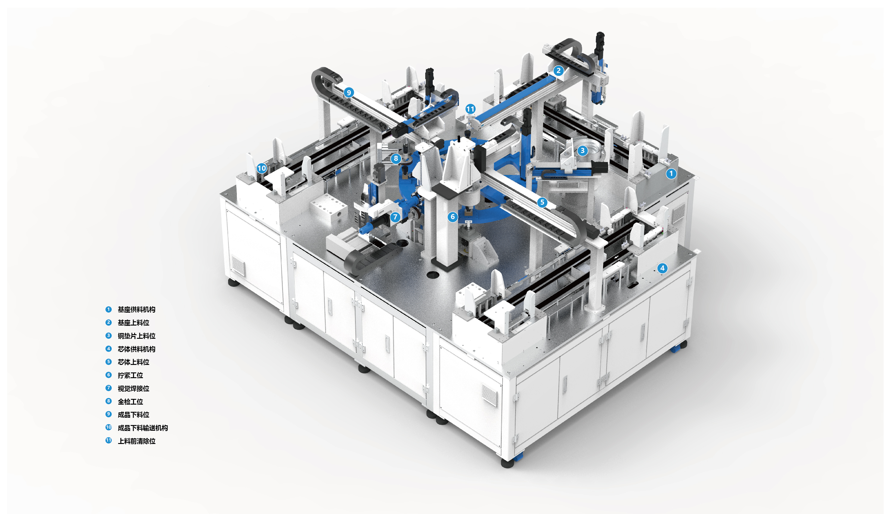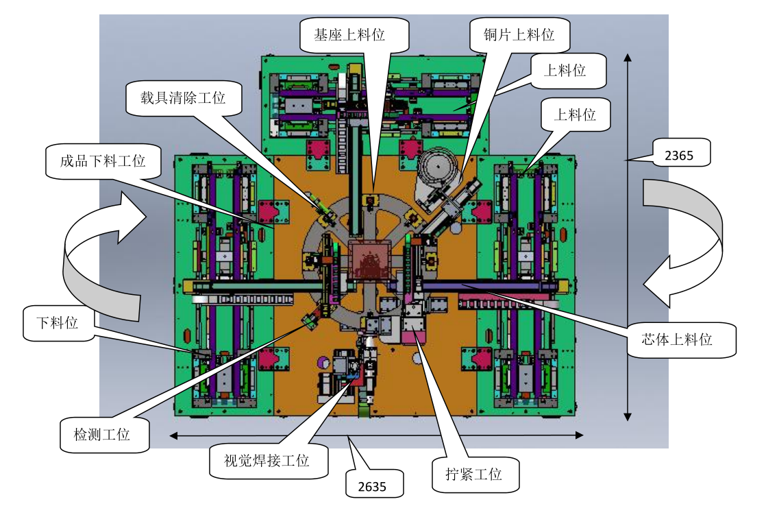 包括传感器自动上、下料、拧紧、CCD焊缝检测、激光焊接、治具清等机构组成。